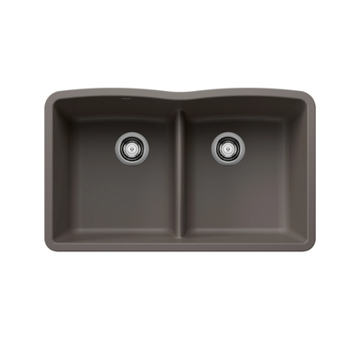 443106 - Diamond SILGRANIT 32" 50/50 Double Bowl Undermount Kitchen Sink with Low Divide - Volcano Gray