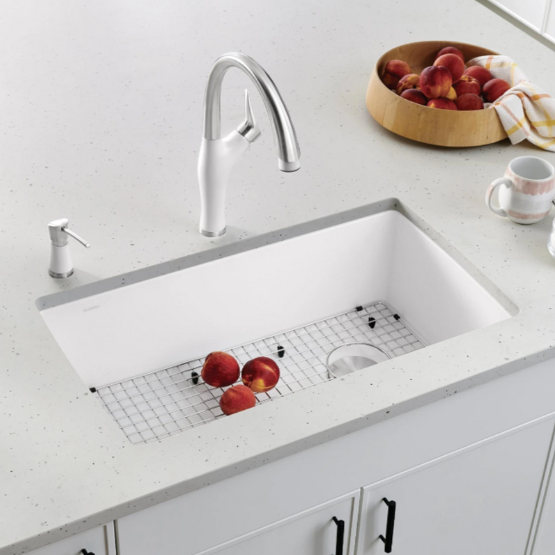 The DIAMOND SUPER SINGLE UNDERMOUNT KITCHEN SINK features a large single bowl design, offering plenty of room for rinsing, washing, soaking, spraying and straining operations. Popular for its functionality and generous bowl size, the SUPER SINGLE allows for large items like pots and pans to be maneuvered easily. Made of SILGRANIT, DIAMOND kitchen sinks are engineered to withstand heavy cookware and hot bakeware. Silgranit sinks are not only strong but also beautiful, available in a range of nature-inspired colors that effortlessly complement the latest kitchen trends. Combine the DIAMOND sink with a BLANCO faucet and accessories to create a BLANCO UNIT; a seamlessly integrated kitchen solution designed to transform kitchen chores into joyful experiences. Everything you need to drink, prep and clean, all in one place.