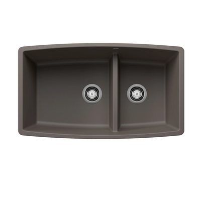 443125 - Performa SILGRANIT 33" 60/40 Double Bowl Undermount Kitchen Sink with Low Divide - Volcano Gray