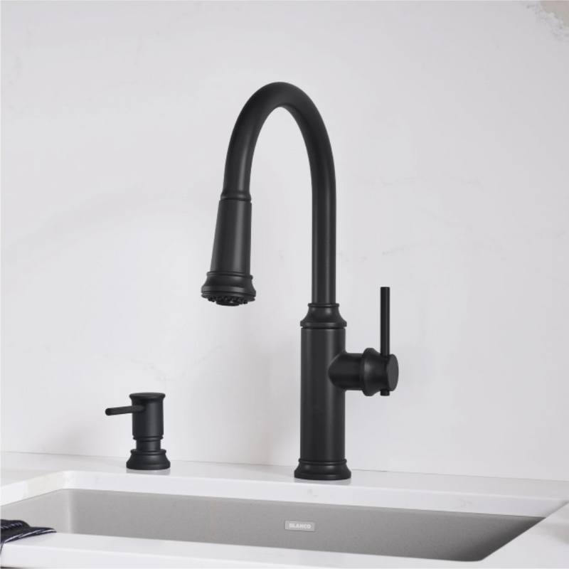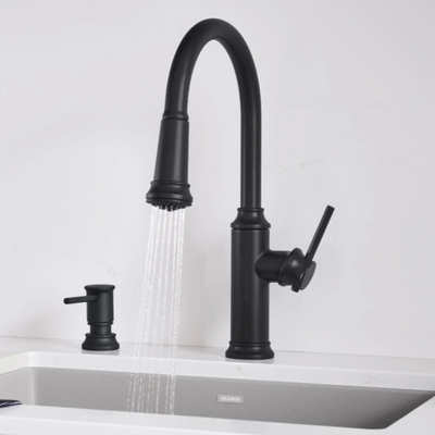 Two worlds collide with the EMPRESSA HIGH-ARC PULL-DOWN KITCHEN FAUCET - modern features with traditional, old-world detailing. Inspired by German wine country, the EMPRESSA PULL-DOWN KITCHEN FAUCET is modeled after the shape of vintage wine presses found across Europe. Characterized by signature details such as vintage wine press-inspired handles and an integrated pull-down, dual spray function, the EMPRESSA is the perfect example of classic European design infused with modern features and functionality.