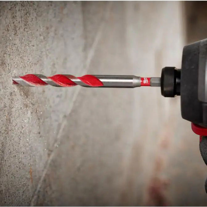 Milwaukee SHOCKWAVE Impact Duty Carbide Hammer Drill Bits are designed with sharpened carbide to deliver up to 9x longer life and 4x faster drilling into concrete. The POWER TIP, available in sizes 3/8" and above, is designed with dynamic cutting edges and a chip breaker for increased productivity and easier drilling from start to finish. Engineered with precision ground carbide, these bits deliver faster starts and less walking in concrete, brick, and block. Wide flute design removes dust faster, reducing heat and delivering more holes per charge. Equipped with a 1/4" Hex Shank on sizes up to 1/2", Milwaukee SHOCKWAVE Impact Duty Carbide Hammer Drill Bits are the ideal solution for drilling in masonry materials with both impacts and hammer drills/drivers.