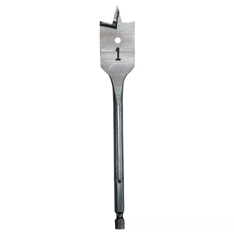 Bore small, clean holes at any angle in a variety of materials with the economical Milwaukee 1" x 6" Flat Boring Bit. This premium quality Flat Boring Bit is made of heat-treated high carbon steel, so the drill point and cutting edge can be resharpened for cost savings and long life. Bore clean, fast holes at any angle in wood, plastic, plywood and Formica. This bit offers a 6" drilling depth but can be used with a 12" extension (48-28-3350) for extended deep-hole drilling. 3/16" shank diameter.