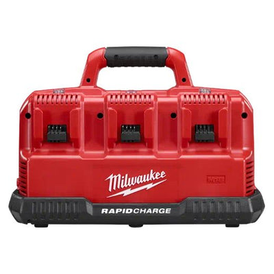 The M18 & M12 Rapid Charge Station is the fastest charging solution in the industry. With the ability to Charge 6 Packs 4X Faster, the station charges three batteries simultaneously while charging each pack up to 40% faster. The charger accepts up to (3) M18 & (3) M12 battery packs, reducing the amount of time spent changing out batteries and increasing productivity on the jobsite. Featuring REDLINK Intelligence, it communicates directly with the battery to monitor cell voltage, temperature, and charge status to optimize the performance and extend the life of the pack. The station has integrated hang holes for vertical mounting, a pass through plug to conserve outlet space, and a convenient carry handle to transport packs on and off the jobsite.