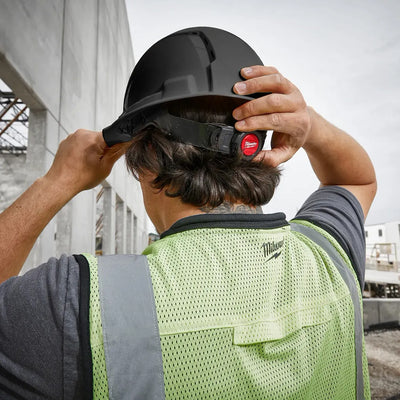 Our Front Brim Hard Hats with 4-Point Ratcheting Suspension - Type 1 are designed to adapt to your jobsite. The hard hat has a BOLT Headlamp Mount that works with most headlamps for easy, secure attachment. Four BOLT accessory slots and two universal accessory slots easily integrate additional personal protection equipment and accessories onto the hard hat. All MILWAUKEE® hard hats have a ratcheting suspension for quick adjustment and added comfort. A BOLT Marker Clip allows for easy access to pens and markers. A sweatband is included and is moisture-wicking for additional comfort. These construction hard hats are ANSI/CSA approved and can be customized by adding your logo.