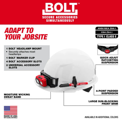 Milwaukee Tool 48-73-1200 - Bolt White Front Brim Vented Hard Hat W/4Pt Ratcheting Suspension - Usa - Type 1, Class C