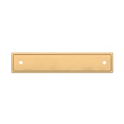 Solid brass rectangular backplate intended for use on cabinet pulls with a 4" center to center.