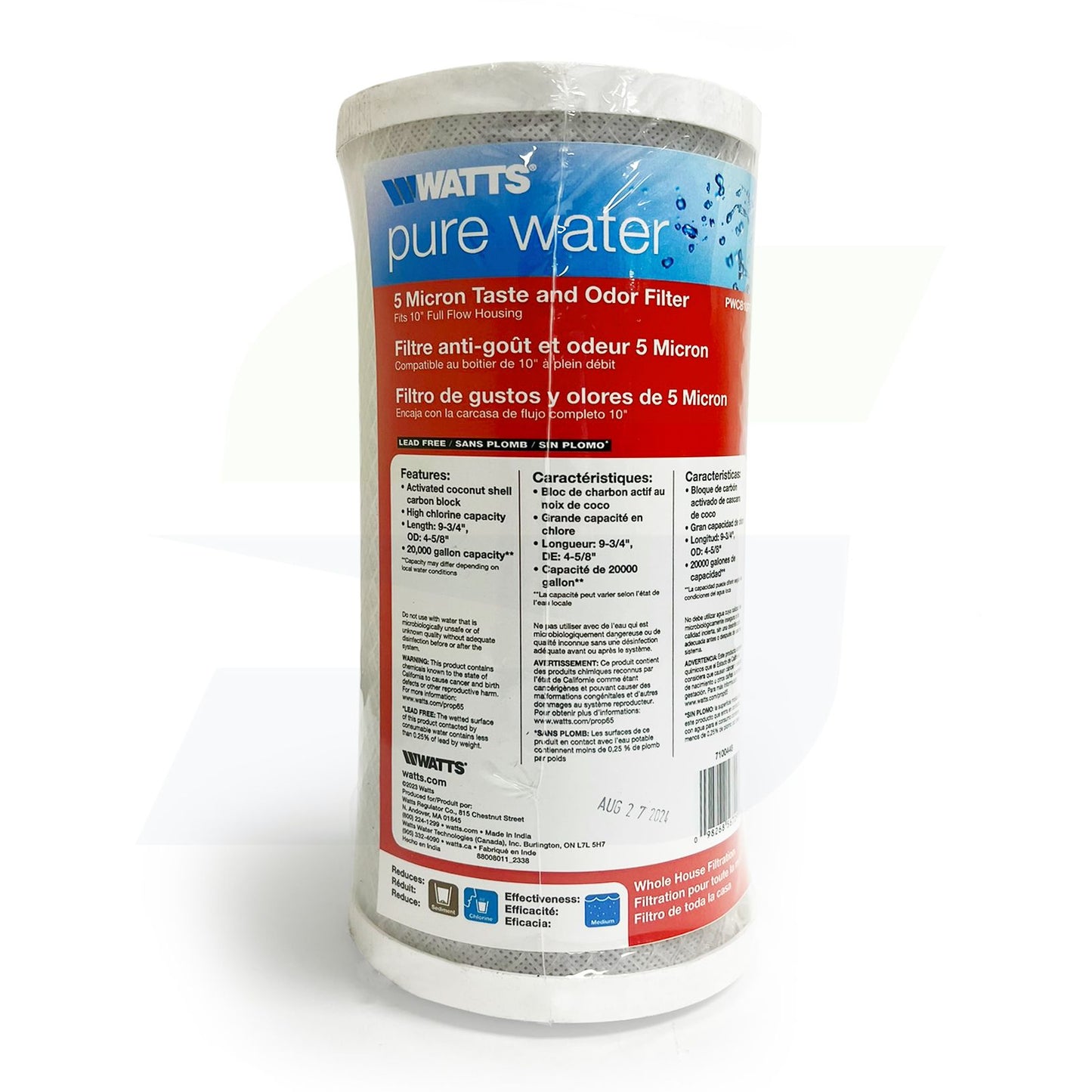Watts 7100448 - 5 Micron Premium Carbon Block Filter Cartridge 9-3/4"