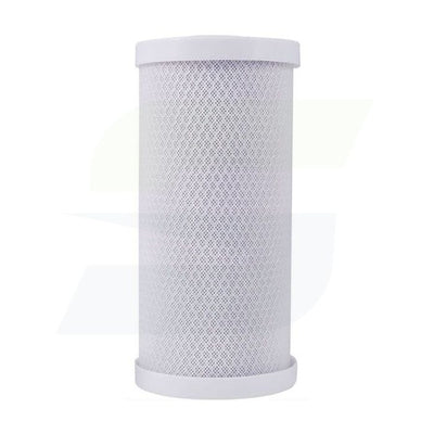 The 10 inch Full Flow 5 nominal micron carbon block uses top of the line coconut shell carbon. This low cost carbon block filter outperforms granular activated carbon cartridges in chlorine reduction, lower pressure drop, lower cost and offers no water channeling. It offers a long life of up to 20,000 gallons at 2 gallons per minute flow rate.