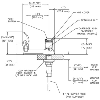 - Dimensions: 2" (5.1 cm) high forged brass bubbler head with a 1/2" O.D. (1.3 cm) slip-joint inlet.