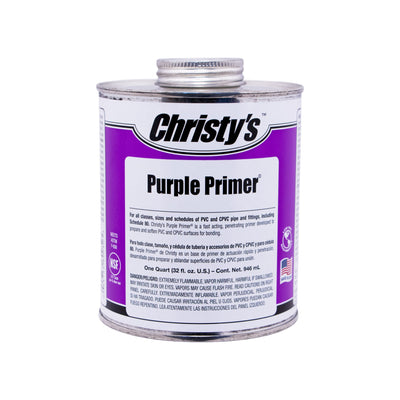 Christy's PURPLE PRIMER is a professional grade primer used in softening and preparing PVC & CPVC pipe and fittings for solvent cementing and helps the solvent cement make stronger joints.