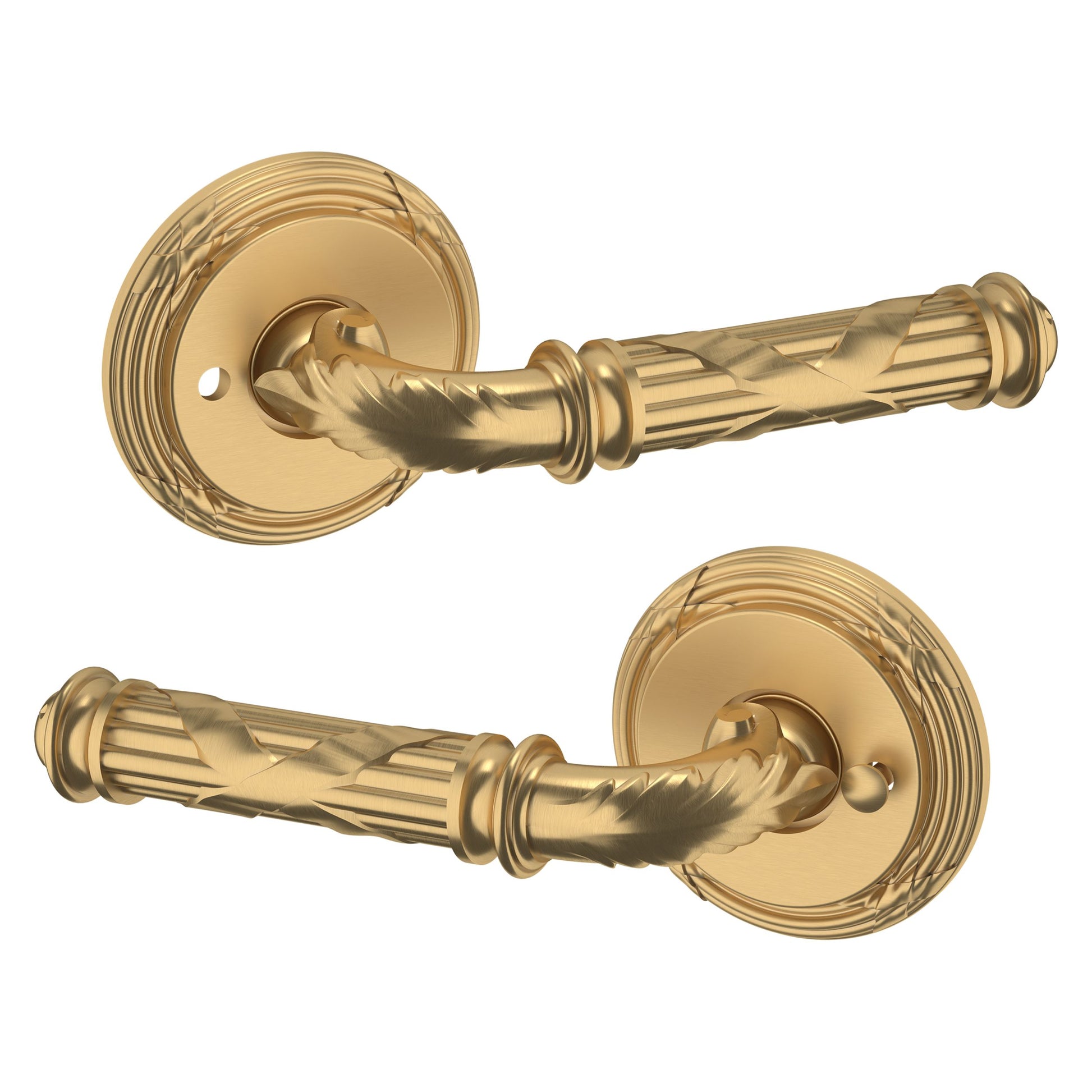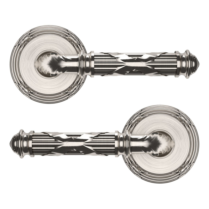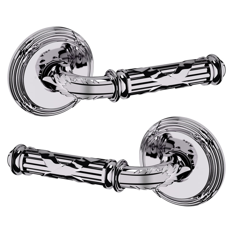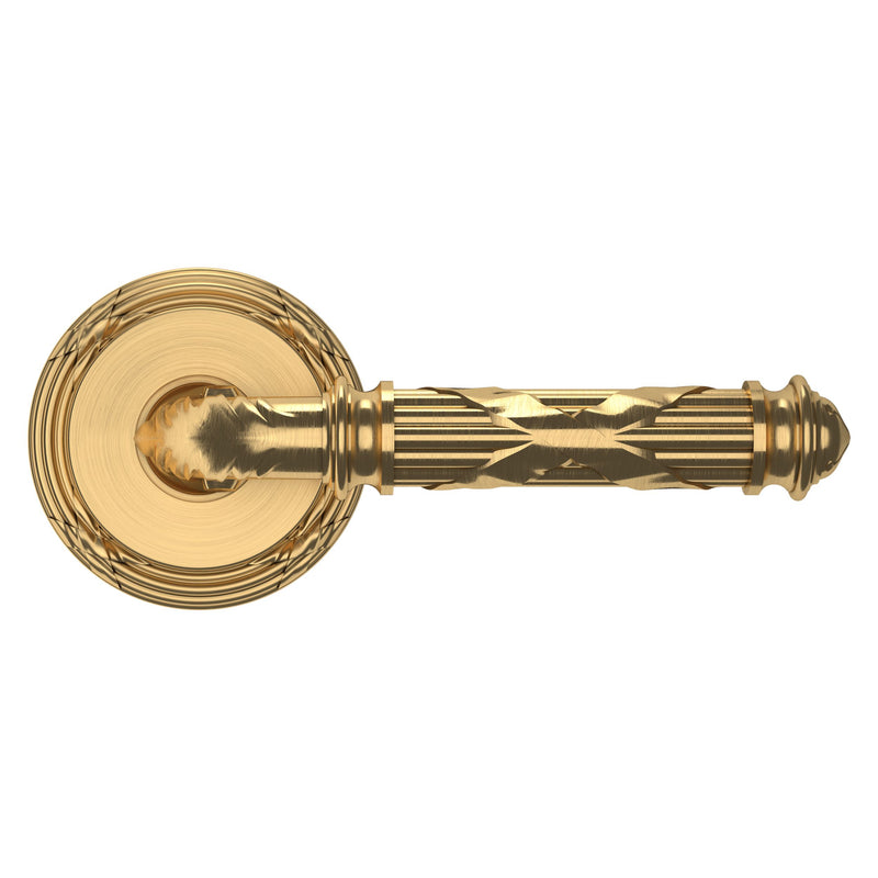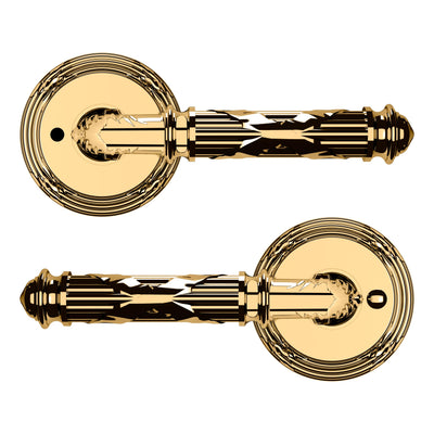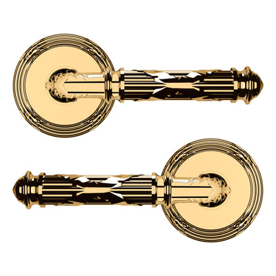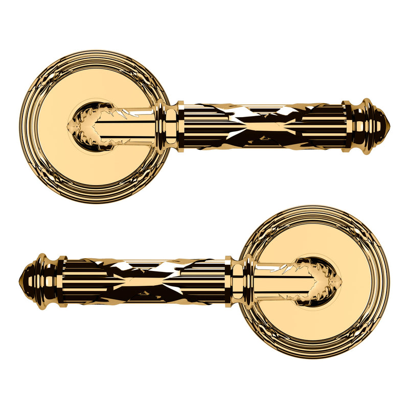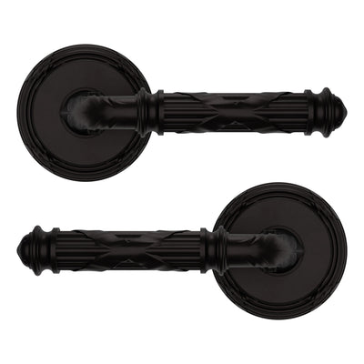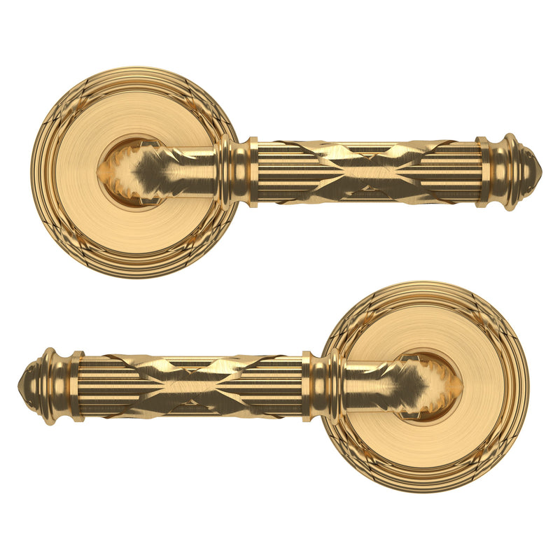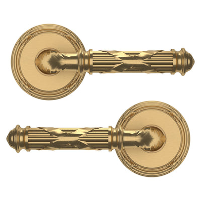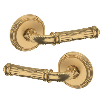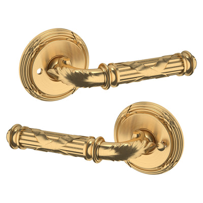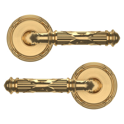 - Solid brass lever set paired with roses for any door with the 2.125" standard door preparation