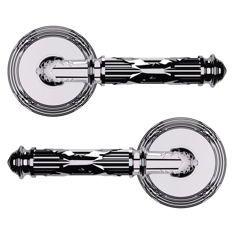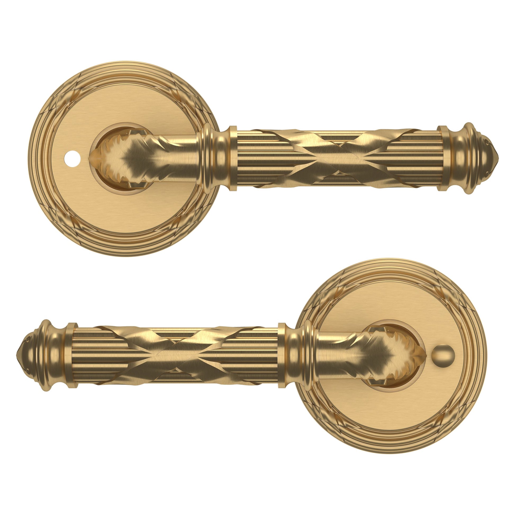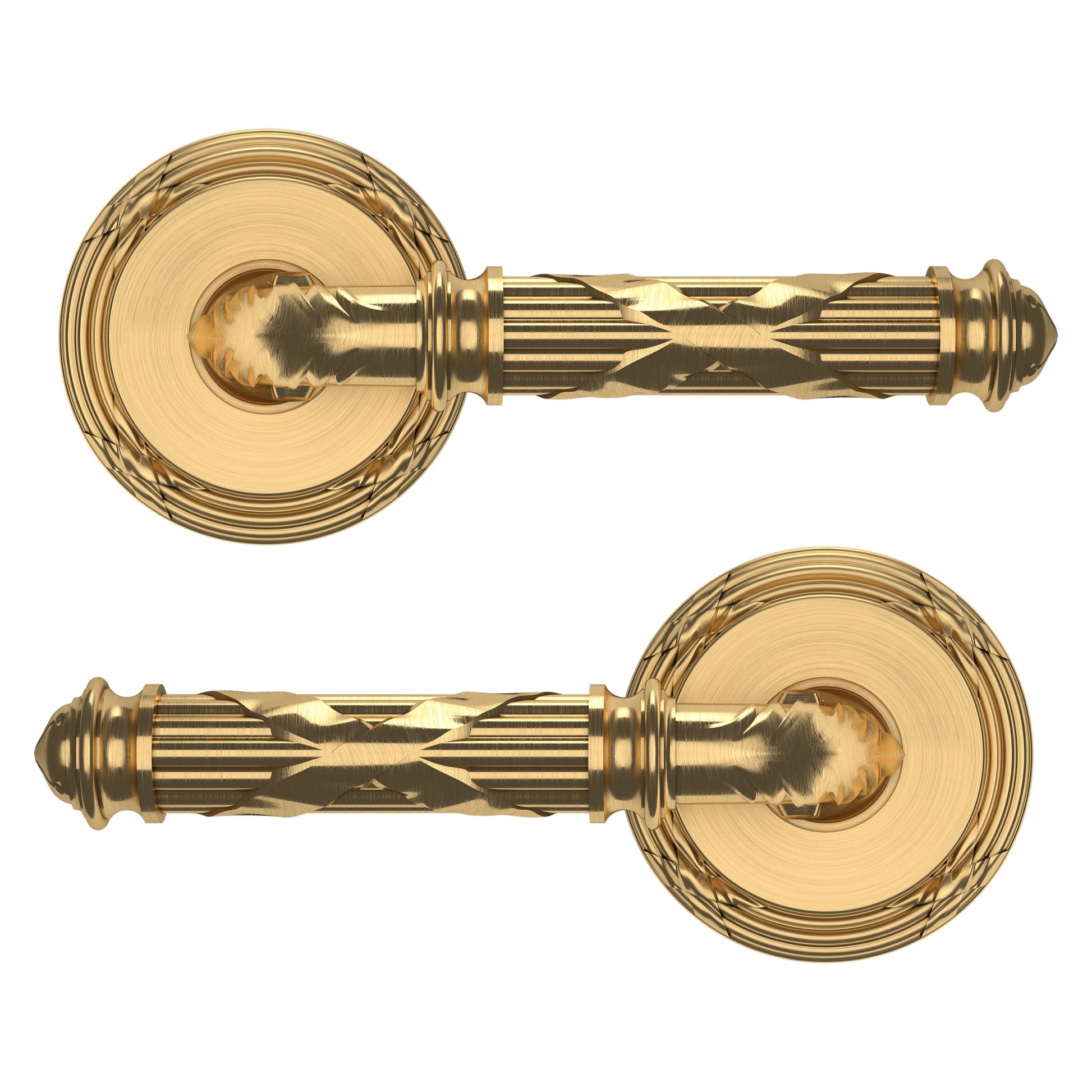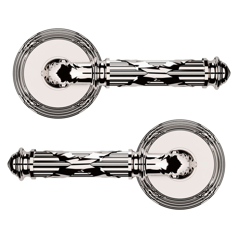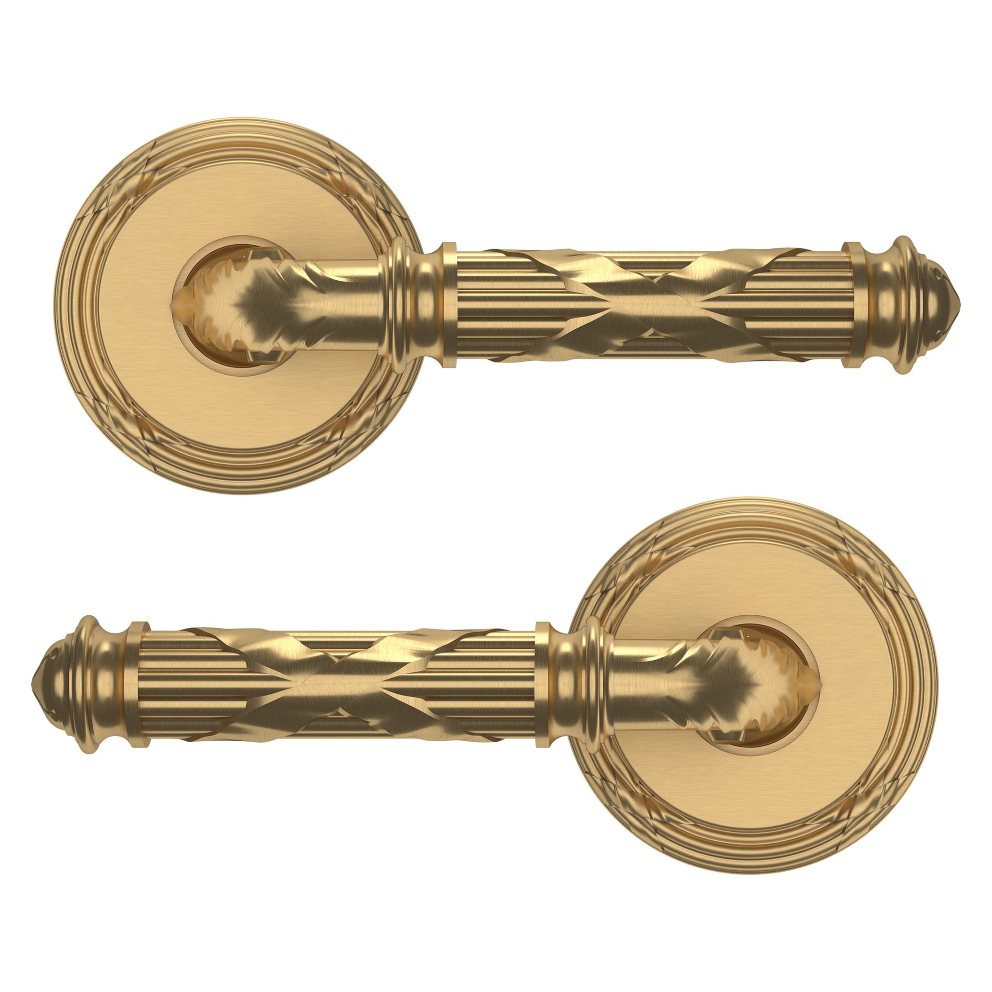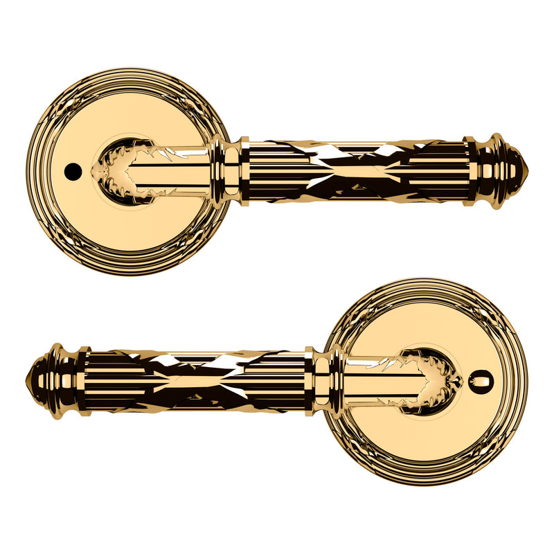 - Solid brass lever set paired with roses for any door with the 2.125" standard door preparation