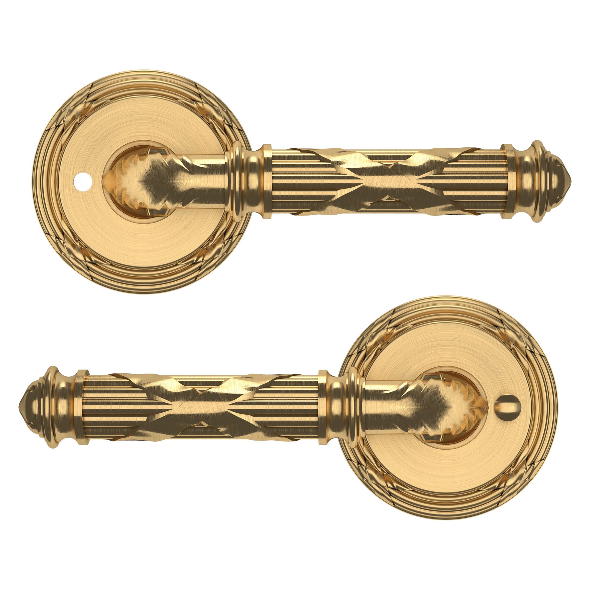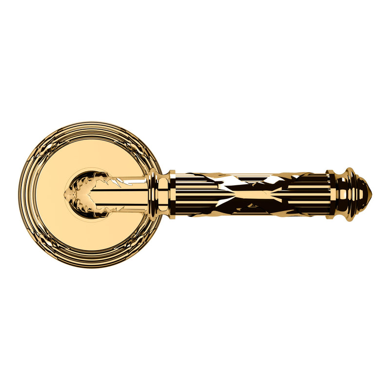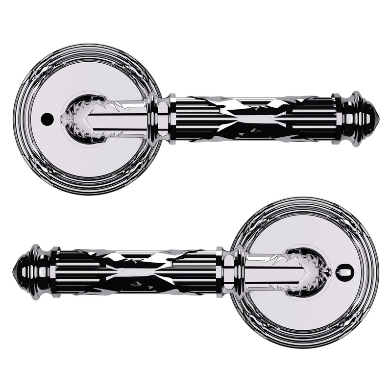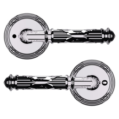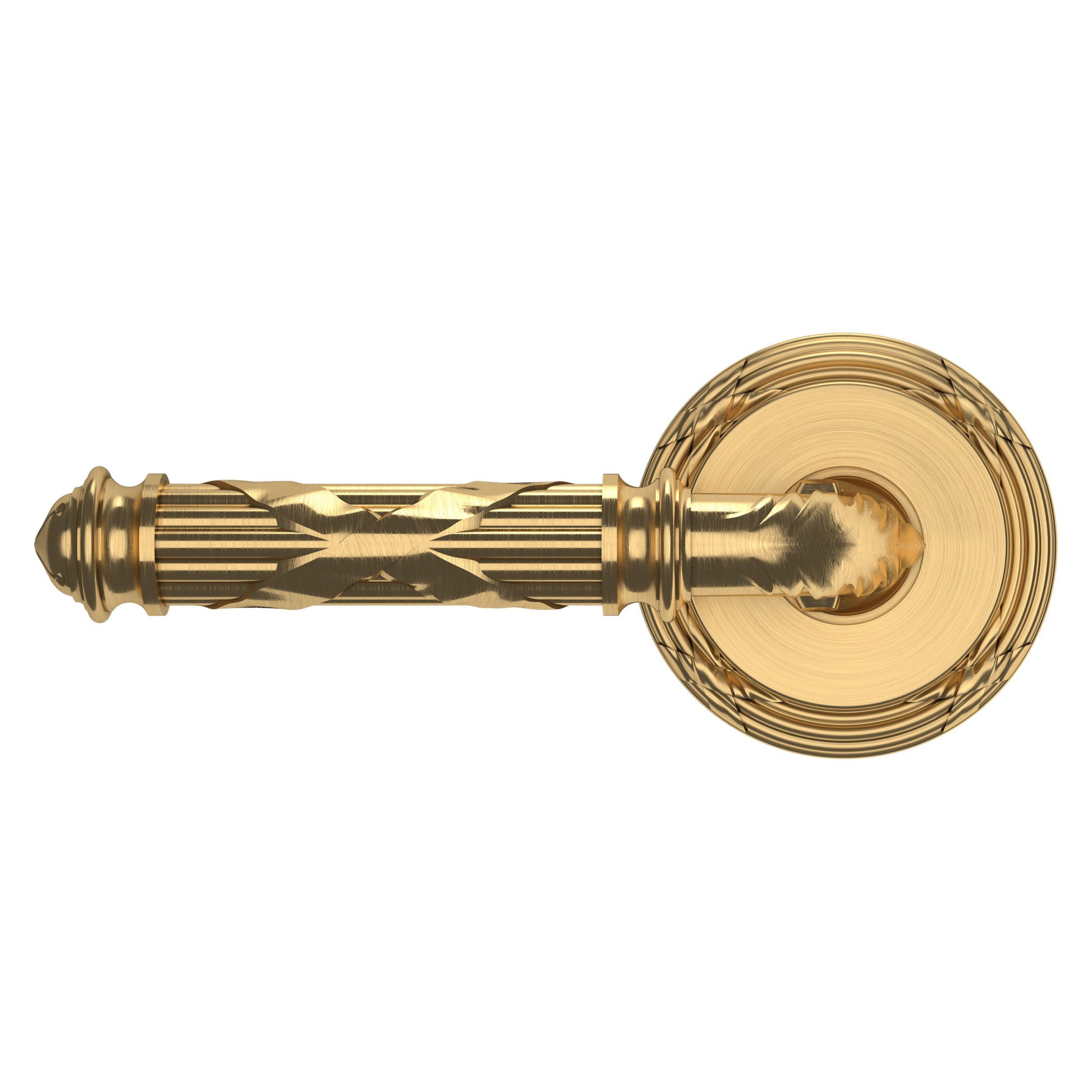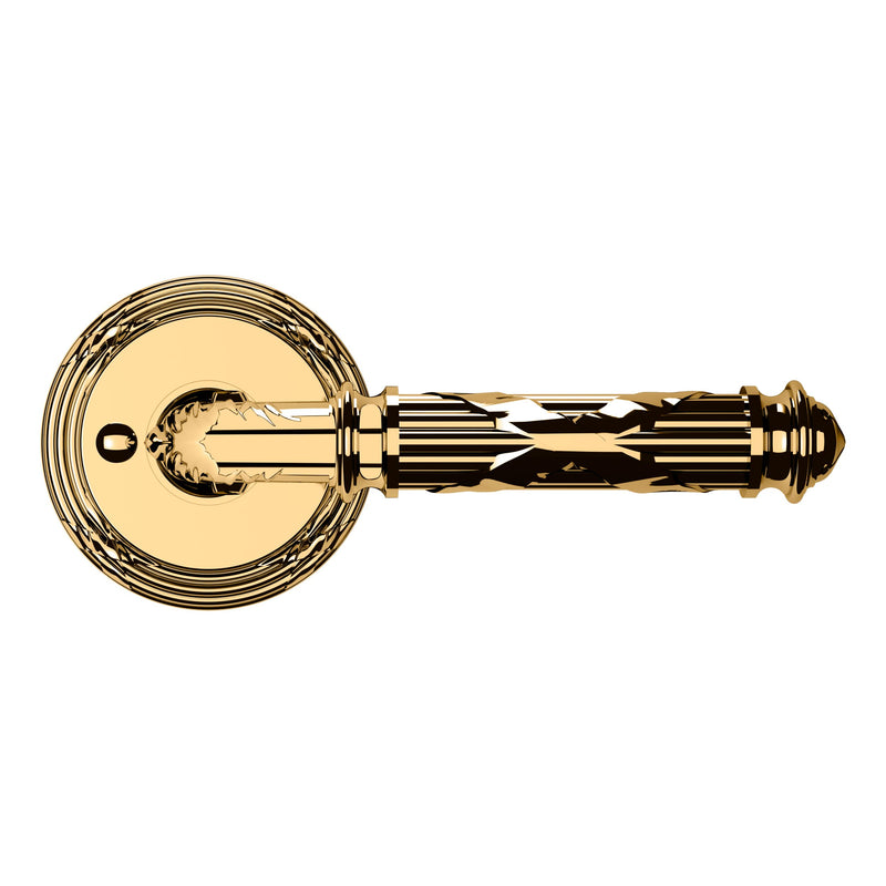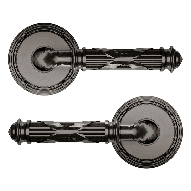 - Solid brass lever set paired with roses for any door with the 2.125" standard door preparation