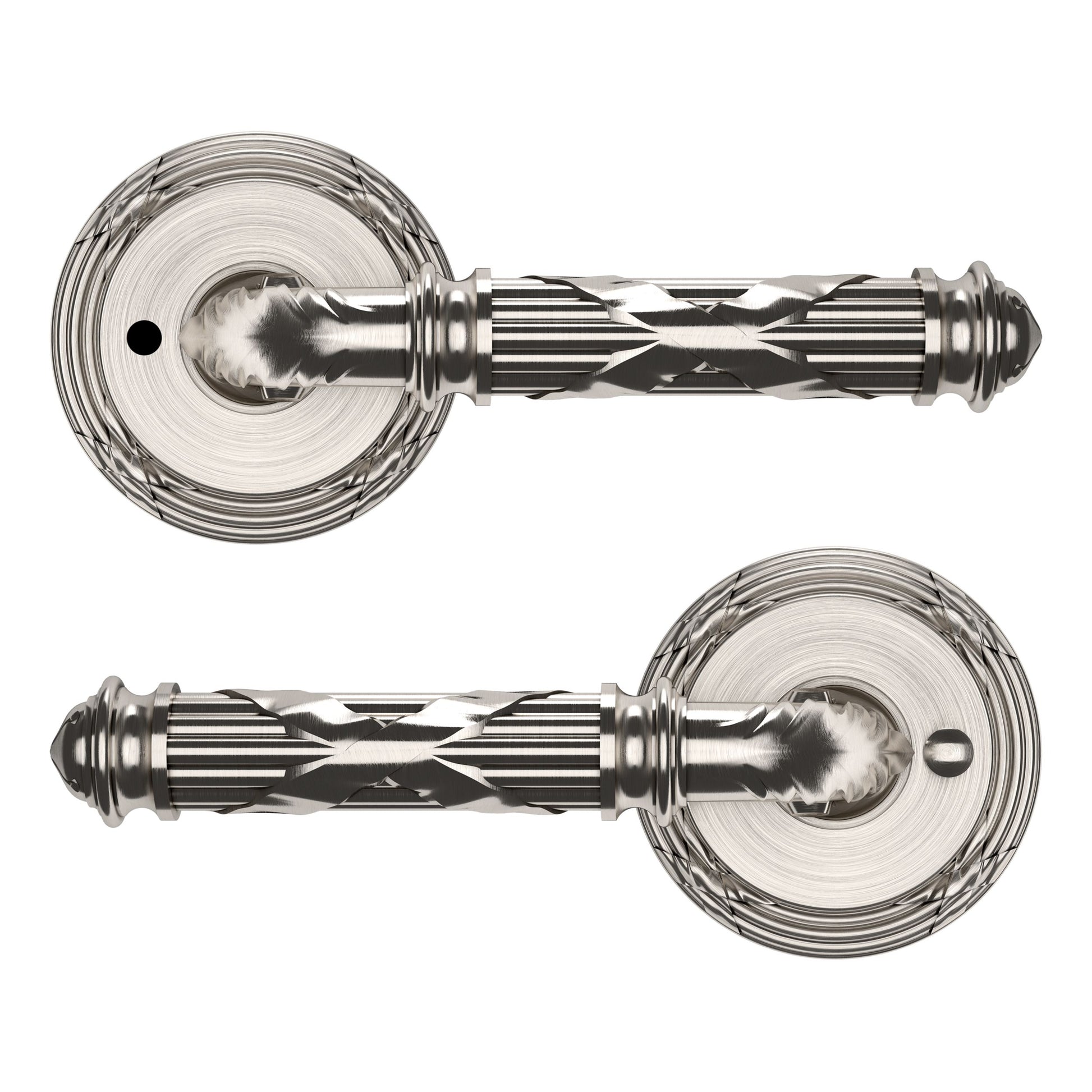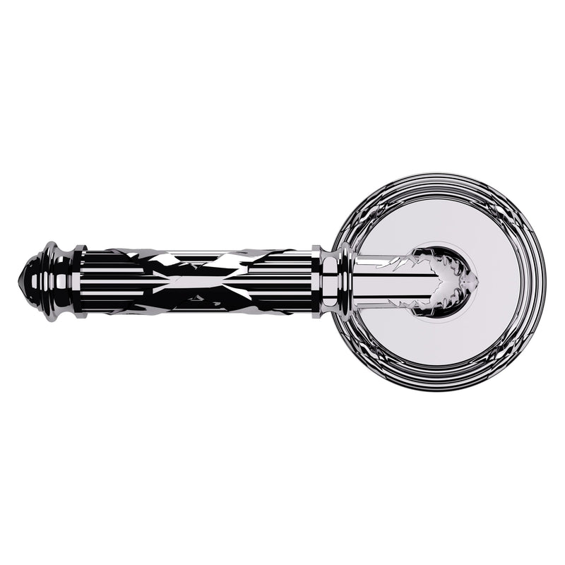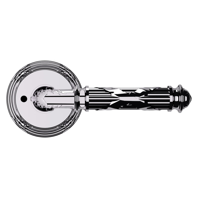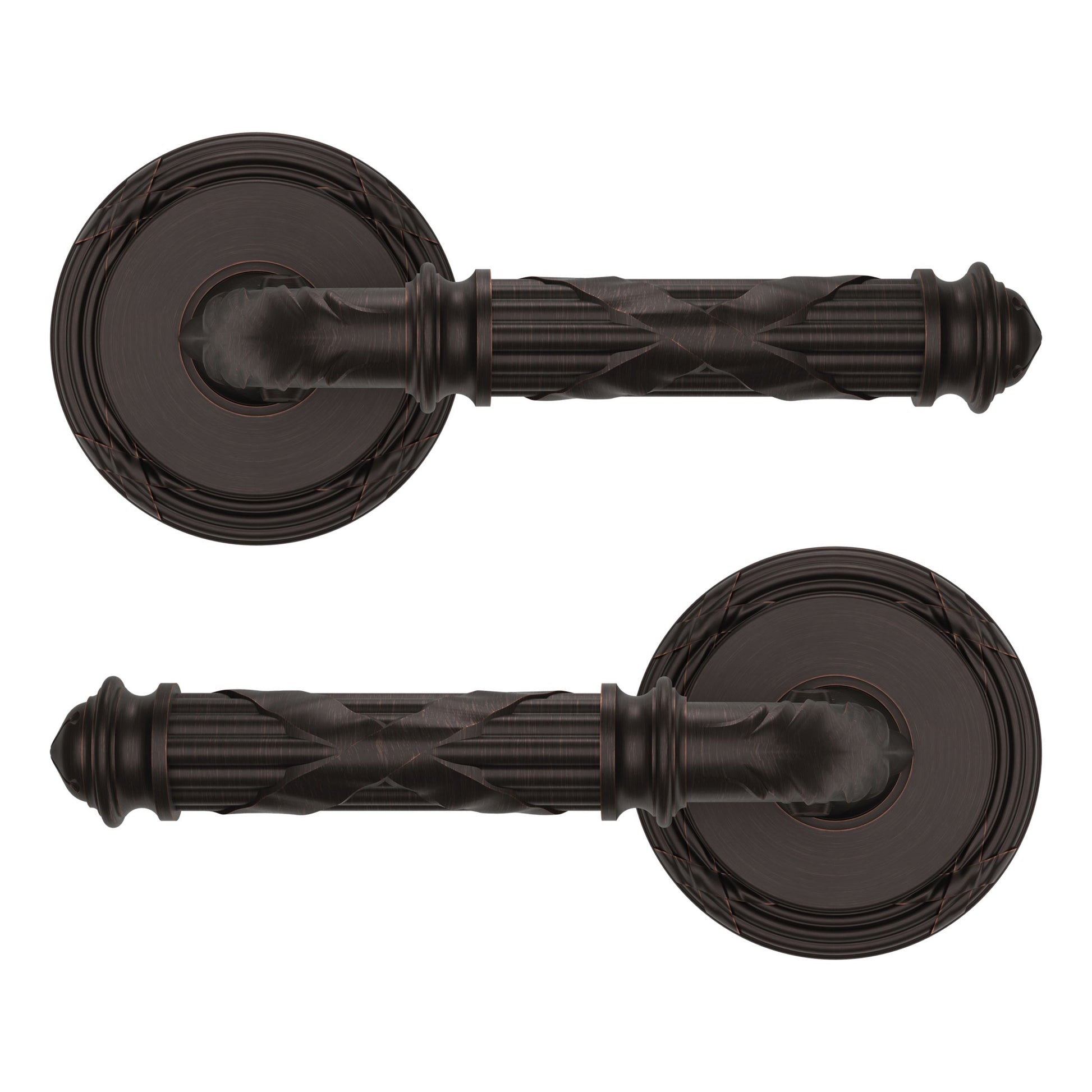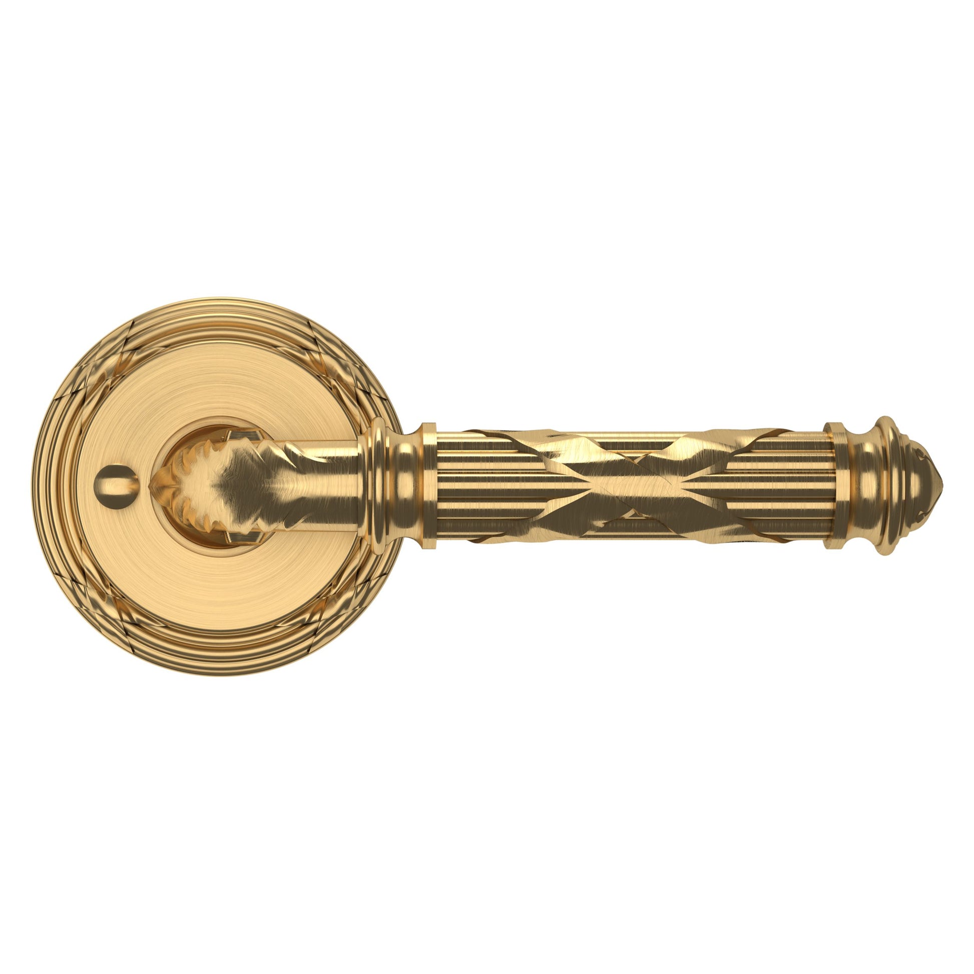- Solid brass lever set paired with roses for any door with the 2.125" standard door preparation