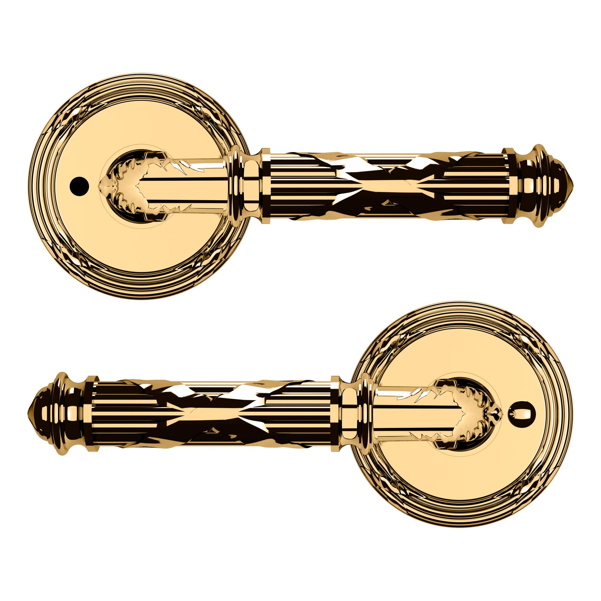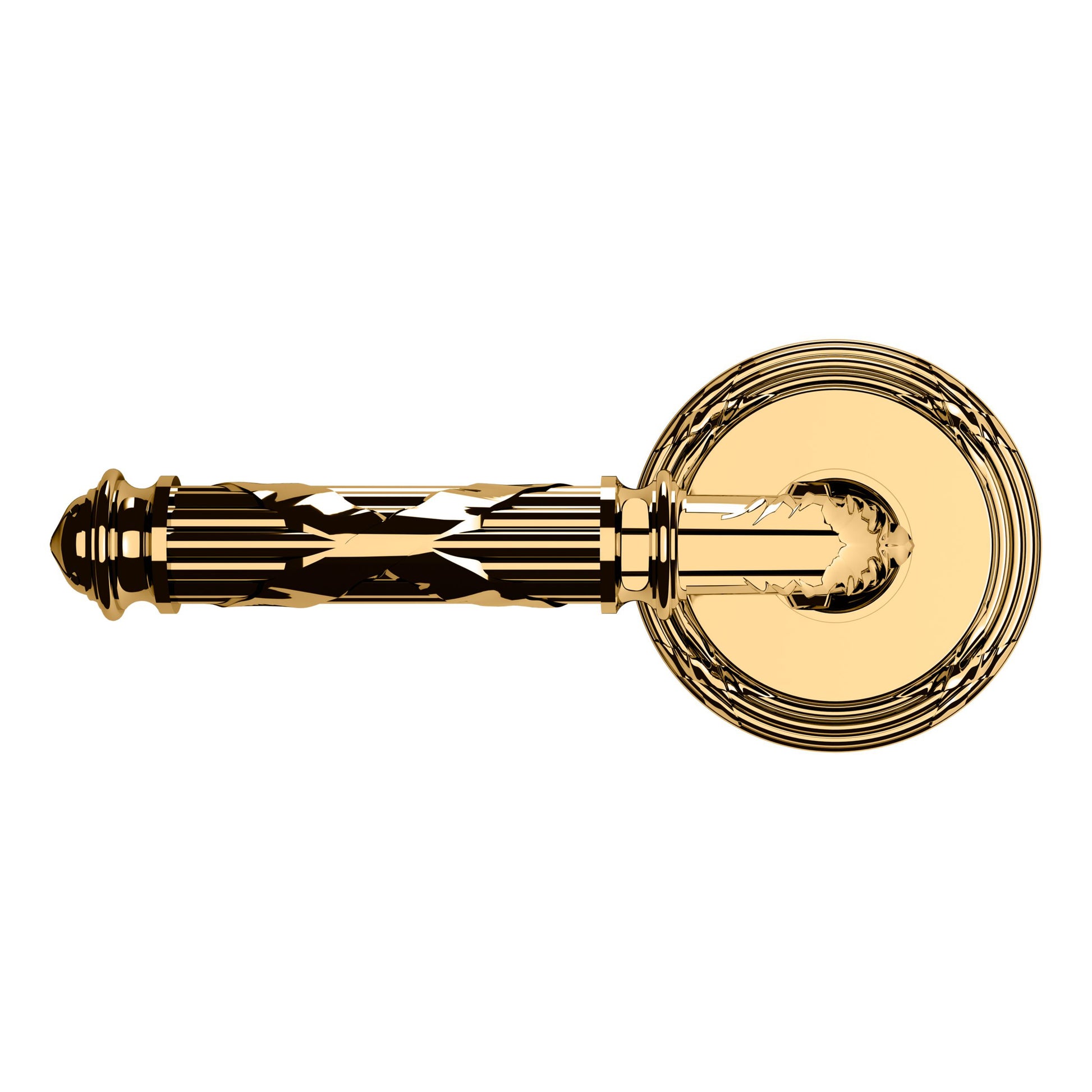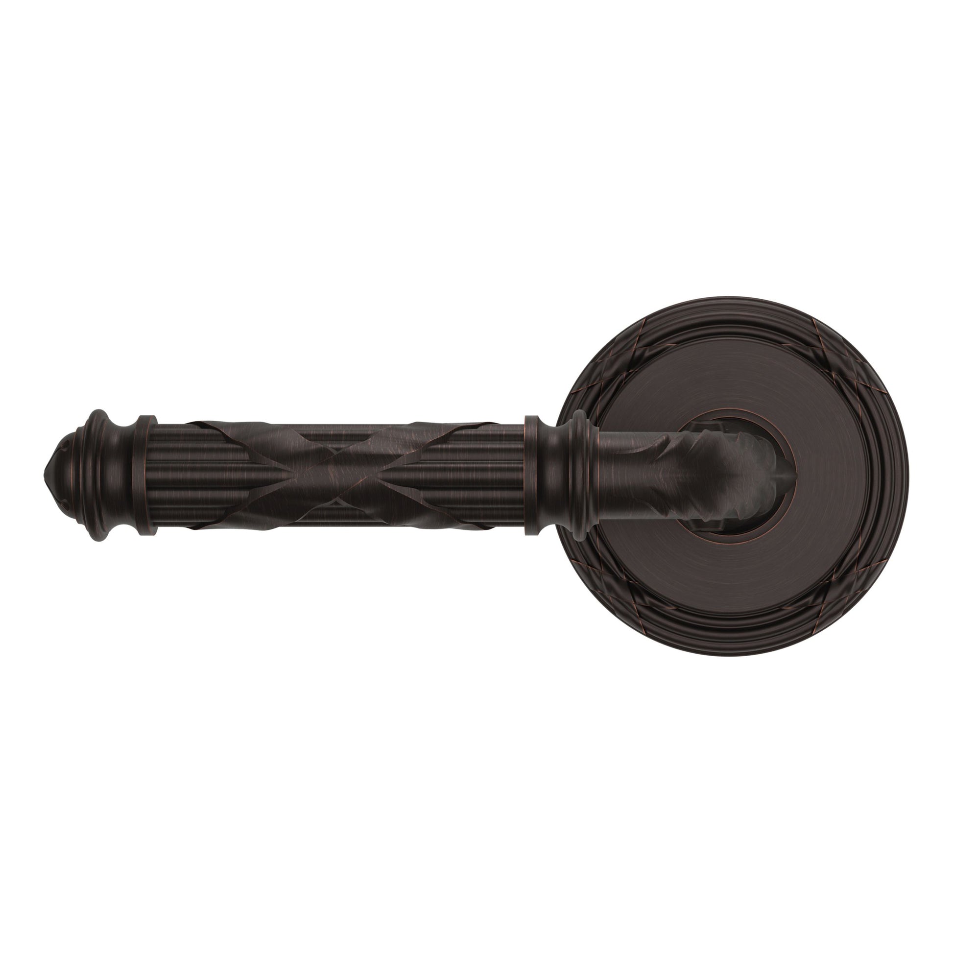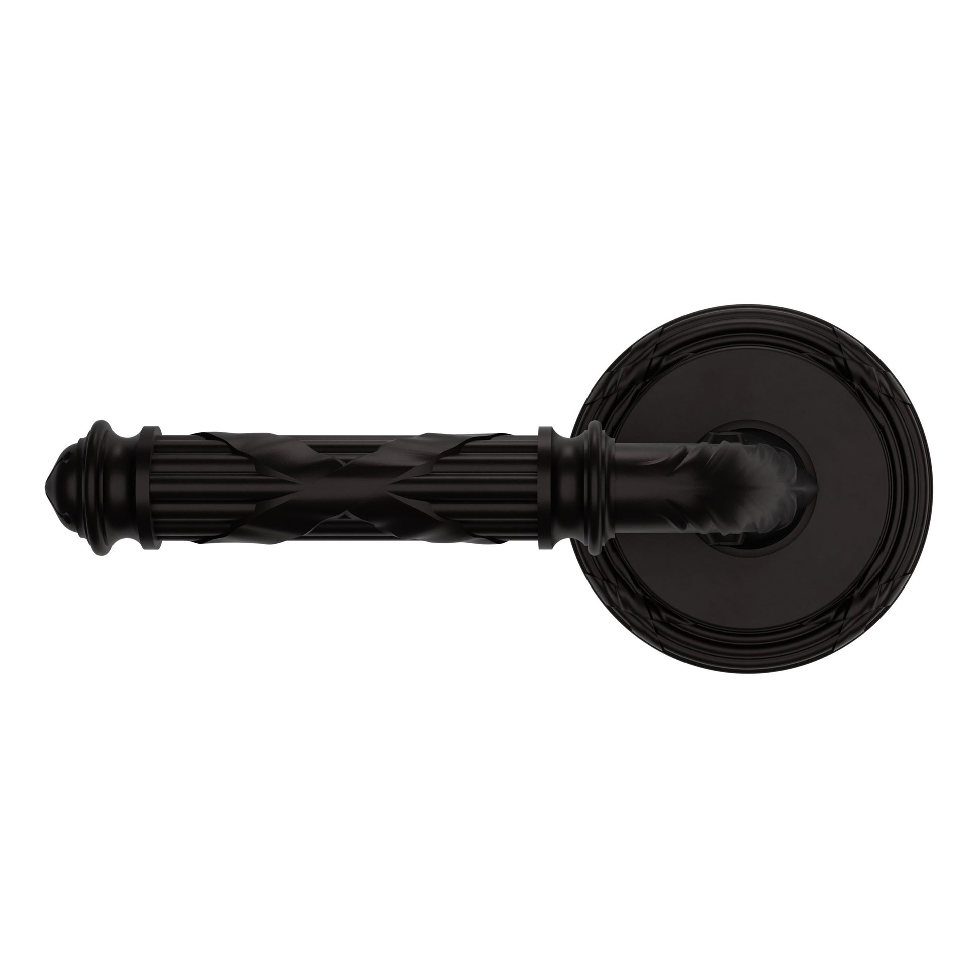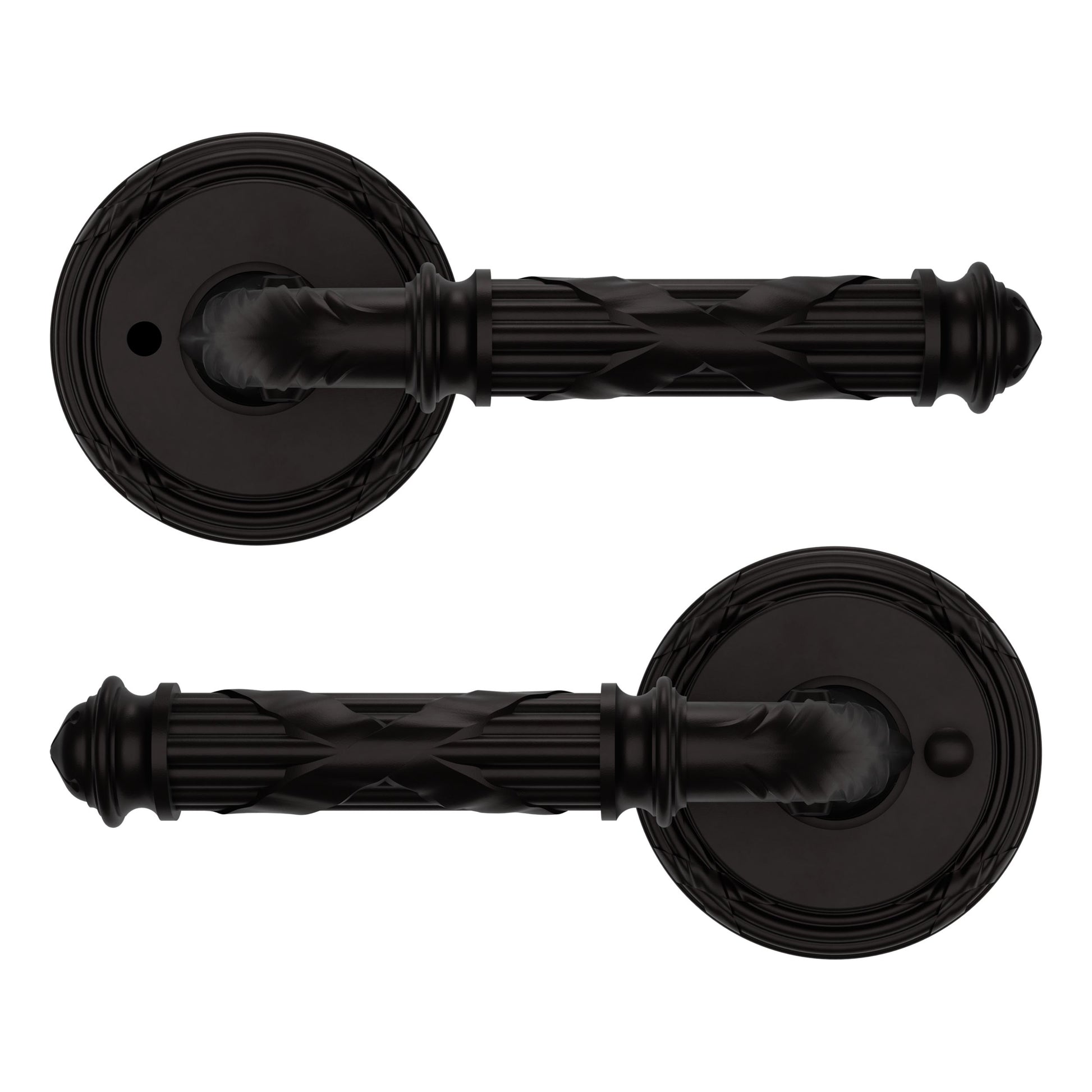- Solid brass lever set paired with roses for any door with the 2.125" standard door preparation