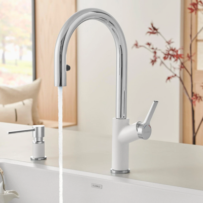 Recognized with the prestigious Red Dot Design Award, the URBENA PULL-DOWN KITCHEN FAUCET is the ultimate blend of function and design. With its slim body and unique handle design, this collection is tailor-made for contemporary urban kitchens. The URBENA is intelligently designed with features that include a hidden sprayer activated by an almost invisible control button, a high-arc spout and ergonomically angled faucet handle that controls water with ease. Match your SILGRANIT sink with a color-coordinated faucet and breathe new life into your space with a pop of color.