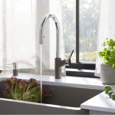 Recognized with the prestigious Red Dot Design Award, the URBENA PULL-DOWN KITCHEN FAUCET is the ultimate blend of function and design. With its slim body and unique handle design, this collection is tailor-made for contemporary urban kitchens. The URBENA is intelligently designed with features that include a hidden sprayer activated by an almost invisible control button, a high-arc spout and ergonomically angled faucet handle that controls water with ease. Match your SILGRANIT sink with a color-coordinated faucet and breathe new life into your space with a pop of color.