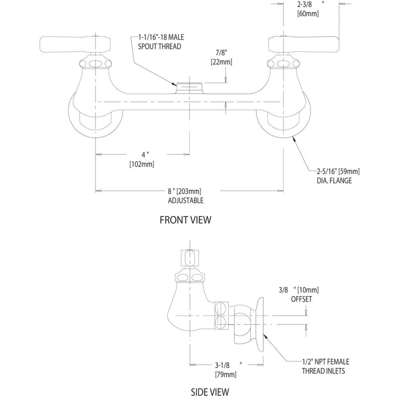 540-LDLESAB - Wall Mounted Manual Faucet with Adjustable Centers - Less Spout - Chrome