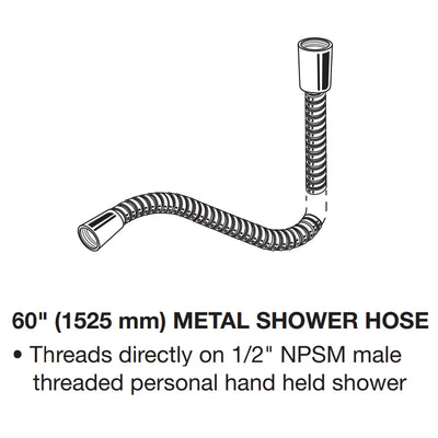 If you're planning to add a handheld personal shower to your bathtub or shower, you'll need one of these metal shower hoses. Available in 59" or 79" lengths. Available in two lengths - Required for use with any hand-held personal shower Compatible with all Personal Showers Limited Lifetime Warranty - Function & Finish