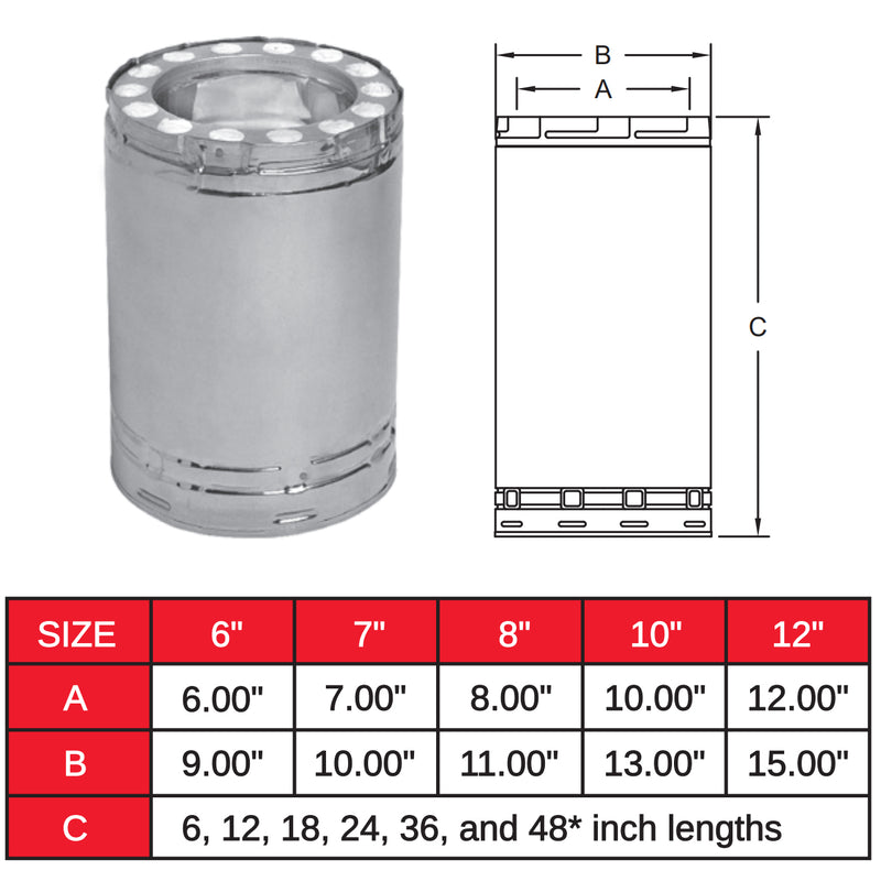 6TGG24 - 6" x 24" Temp Guard Chimney Pipe