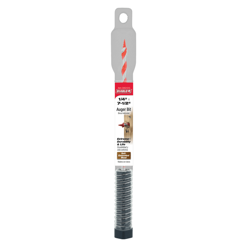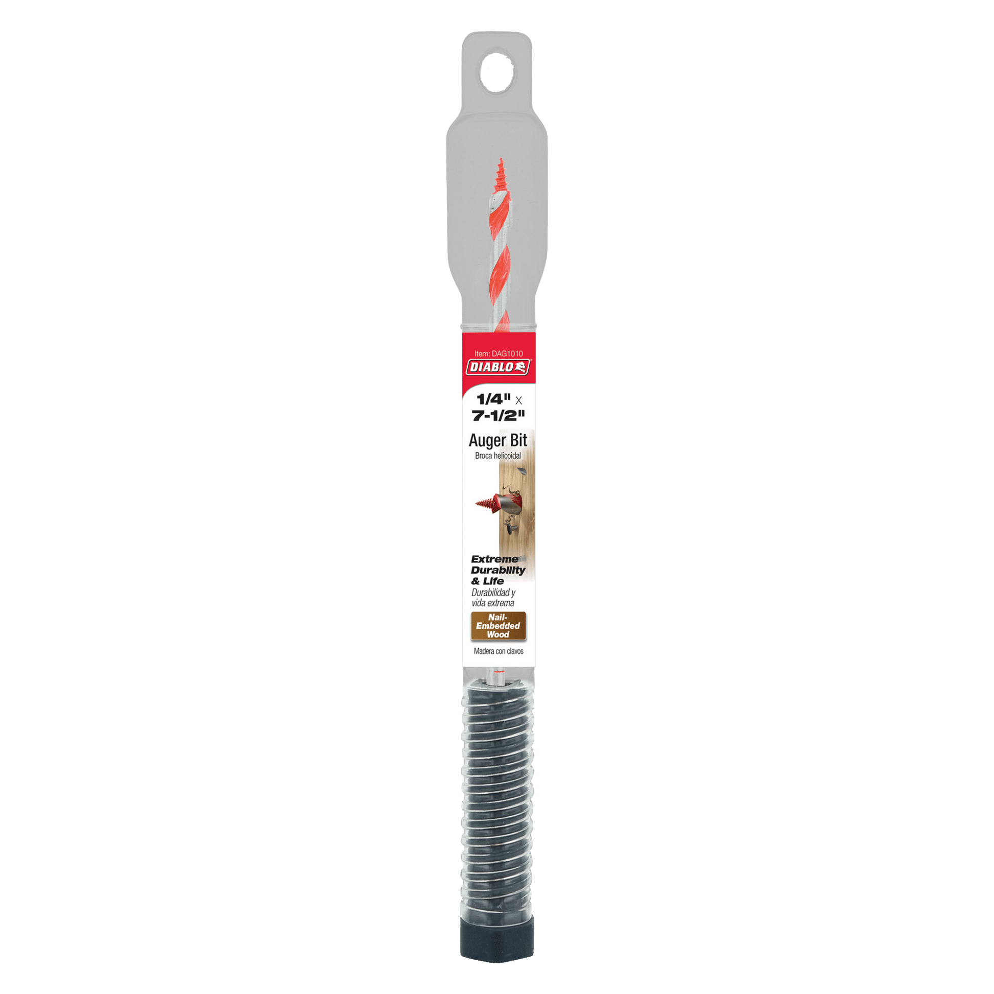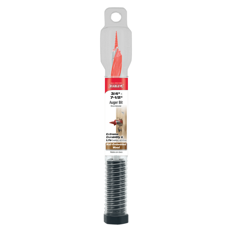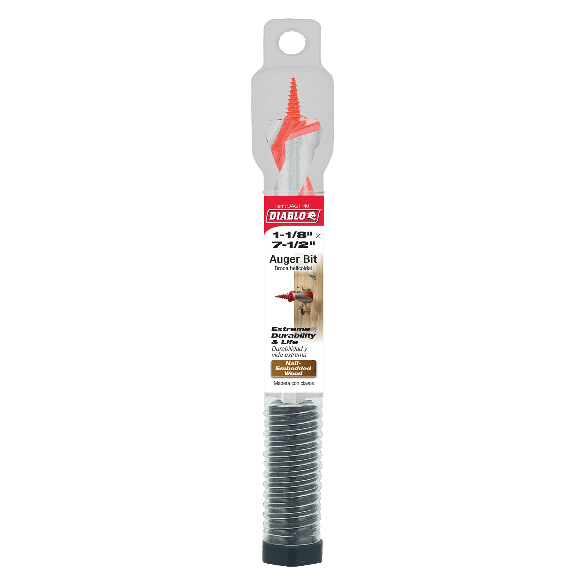 Diablo's Auger Bit range provides maximum performance, extreme durability and superior life in nail-embedded wood applications. A two-step cutting action creates holes that are precise and clean. The self-feeding Dura-Tip pulls the bit while the dual cutting edge delivers an effortless, smooth drilling experience in wood with nails. Deep flutes enhance the chip evacuation process for more holes per charge. Quick change shank increases stability and durability in cordless and corded impact wrenches and drill drivers.