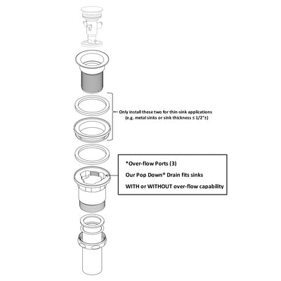 Give your bathroom sink a fresh update with the Patented Pop Down Drain. As functional as it is stylish, this fixture is easy to clean and will virtually eliminate the unwelcome smell that can come with most faucet drains, making it the perfect fit for any guest or master suite bathroom sink. The Patented Pop Down drain is made of solid brass with a seamless look that elevates your bathroom to its fullest potential and completes the sleek, perfect design for which you've been searching.
