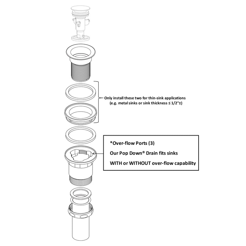 - Use for sinks WITH or WITHOUT overflow