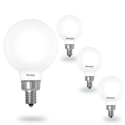 - STYLE MEETS FUNCTION: With its unique G16 decorative glass globe and E12 base, these milky glass finish bulbs are ideal in spaces where their unique shape is exposed and seen, perfect for indoor or outdoor covered chandeliers or sconce fixtures, and are damp rated.