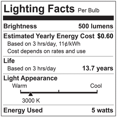 - LONG LASTING: These 5 watt LED bulbs are designed to replace a traditional 60 watt incandescent bulb while lasting longer, as each bulb is estimated to last 15,000 hours before they need to be replaced, meaning fewer burnouts and replacement bulb purchases.