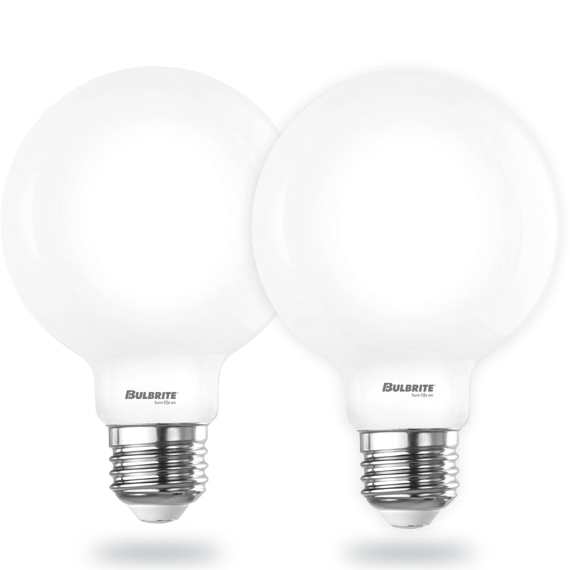 The Bulbrite Warm Dim collection matches the look and feel of incandescents when dimmed while offering the long-lasting energy savings of LED light bulbs. Cast the perfect hue, from soft white to daylight, throughout any room of your home with this 2-pack of 9 watt decorative, round glass G25 LED bulbs. Each bulb is long lasting and compatible with your dimmer technology and fixtures, with a clear filament, milky glass finish, and an E26 standard screw base. For over 50 years Bulbrite has grown from one man's dream to the dream of many. But the one thing that has remained the same - our company's purpose, our guiding light (pun intended!). We believe that light is so essential - so fundamental - because it impacts every moment of our lives. Our dream is to touch the lives of many by providing the most beautiful light possible as the leader in light bulb solutions. Trust in Bulbrite to brighten your space.