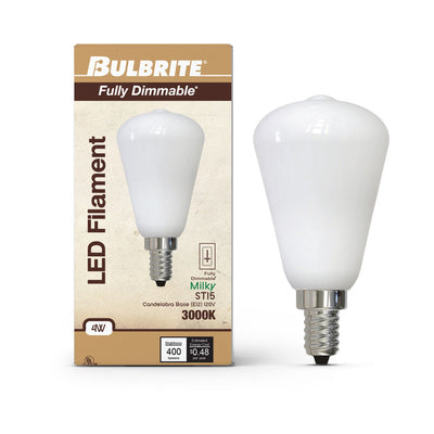 776824 - Filaments Dimmable ST15 Milky Glass Candelabra Base - 4 Watt - 3000K - 4 Pack