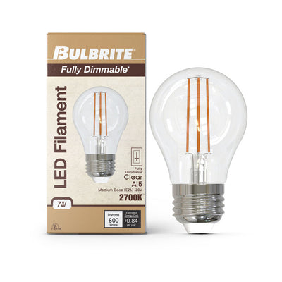 Bulbrite 776829 - Filaments Dimmable A15 Clear Glass Medium Base - 7 Watt - 2700K - 4 Pack