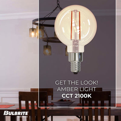 The Bulbrite 2.5W G16 LED filament bulb offers you a round, decorative shape that suits any style as you brighten up your space. You�ll get a warm amber hue from its 2100 Kelvins to foster an inviting atmosphere for your household or any other gathering. It's also suitable for enclosed luminaires.