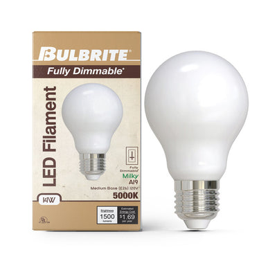776961 - Filaments Dimmable A19 Milky Glass Medium Base - 14 Watt - 5000K - 4 Pack