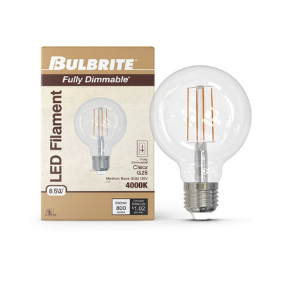 776977 - Filaments Dimmable G25 Clear Glass Medium Base - 8.5 Watt - 4000K - 4 Pack