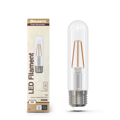 Bulbrite 776991 - Filaments Dimmable T9 5" Clear Glass Medium Base - 5 Watt - 5000K - 4 Pack