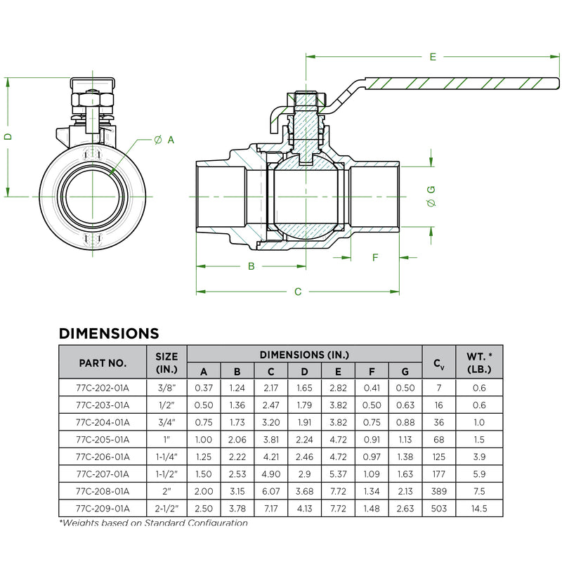 The Apollo 77C-A "Contractor Series" Ball Valve features a dezincification resistant bronze body, premium RPTFE seats and stem packing and a "Solid Ball" design that delivers true full-port flow performance. Cast and machined in Apollo’s South Carolina manufacturing plants using proven ASTM materials. Not for use with potable water systems in USA.