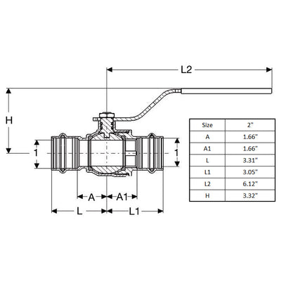 79845 - - 2" ProPress Ball Valve with Stainless Steel Ball and Stem, Lead Free