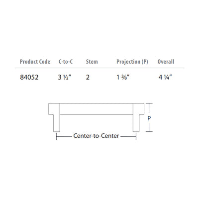 84052 - 3-1/2" Centers Knurled Bar Rectangular Stem - Satin Brass