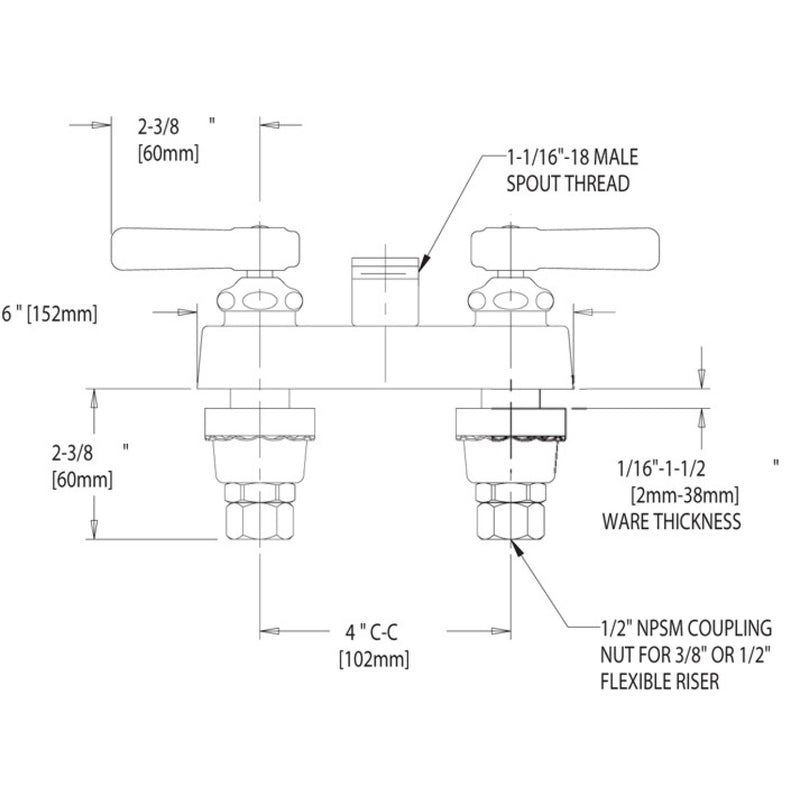 - 1/2" NPSM supply inlets and coupling nut for 3/8" or 1/2" flexible riser