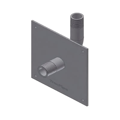 Schedule 40 B.I.P. 90 deg. stub out for use at movable appliance locations, with mounting plate. The rigid pipe stub-out must be securely fastened to the wall or floor using a pipe flange or other rigid mounting component.