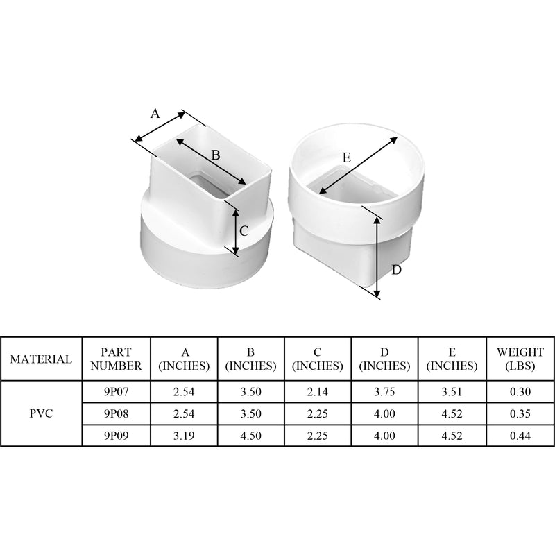 NDS 9P09 - PVC Downspout Adapter - 3" x 4" Downspout x 4" DWV/SCH40 Hub