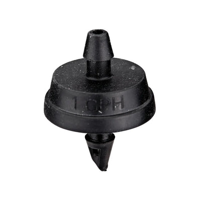 Give plants consistent watering with the AccuFlow 1.0 GPH Pressure Compensating Emitter. The PC emitter is designed to deliver a constant output of 1.0 GPH of water whether the water pressure varies, and no matter the distance from the water source. Attach barbed inlet into the end of 1/4 in. feeder line (A220 and A250) and lift emitter with stake to keep off the dirt; or insert dripper directly into a punched-out hole in supply tubing to water plants along the run. Ideal for watering landscape and container plants, shrubs, trees, and hanging baskets. Emitter has a self-flushing feature to help eliminate sediments and reduce clogging. Emitter is made of polyethylene and silicone treated with UV inhibitors to prevent fading and cracking.