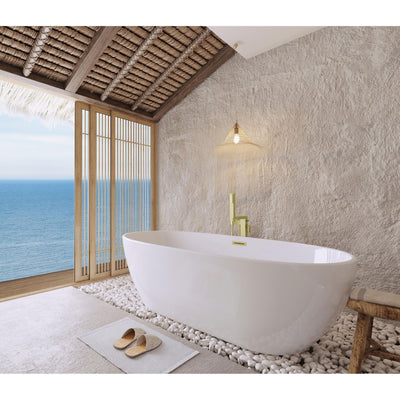 This freestanding bathtub boasts a timeless oval shape, designed to provide both aesthetic appeal and a comfortable bathing experience. The smooth, rounded contours create a soft, inviting silhouette, making this tub an elegant focal point in any bathroom. Its classic oval design allows for an ergonomic soaking experience, offering plenty of space to relax while maintaining a sleek, modern profile. Crafted from premium-quality acrylic, it is built to withstand daily use while maintaining its beautiful glossy finish. The stain and scratch-resistant surface ensures easy maintenance, keeping it bright and clean for years.