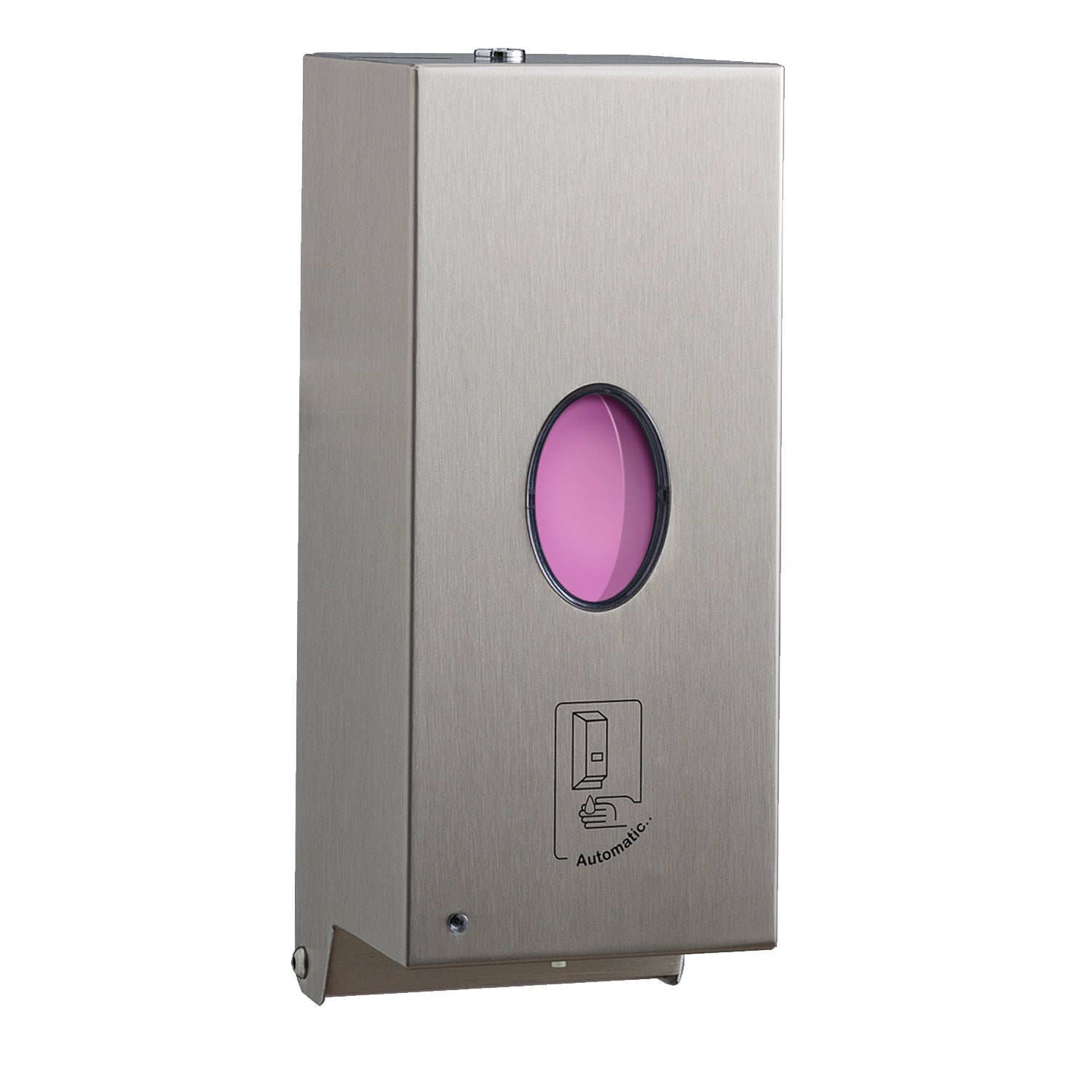 - Automatic wall-mounted soap dispenser shall be Type-304 stainless steel with satin-finish