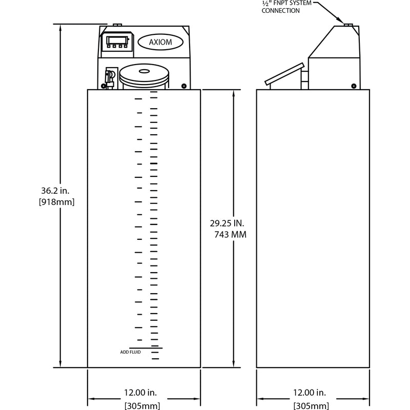 The industry leader for pressurizing closed-loop hydronic systems introduces the newest "PRESSURE PAL" to the Axiom Product Family. The DMF150 utilizes a digital pressure control (0-45 psig) with electronic alert contacts. The tank design incorporates a wall bracket connection that comes standard in the box. Front fill point makes fluid handling a simple process.
