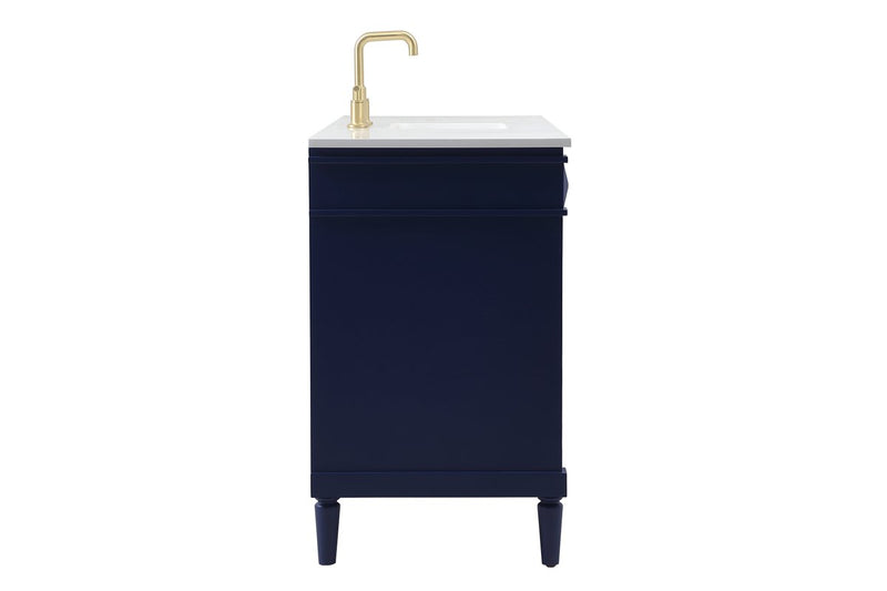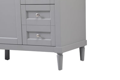 This transitional vanity is a beautiful piece of bathroom furniture will look amazing in your design scheme. The cabinet features a shaker style smooth door panel with simple round knobs and soft close hinges provide ample room for accessories. Packed with multiple side drawers with soft close glides for added comfort and full access to bath supplies. Convenient deep drawer stores all of your tall bath essentials. Constructed of engineered wood and solid wood legs with hand painted finish. The durable quartz countertop is a versatile material in an ivory white finish. Minor assembly of the legs needed to get this vanity up and running.