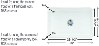 - SINK DIMENSIONS: 30" L X 19. 19" W X 9. 25" D and designed to fit a minimum 33" cabinet base