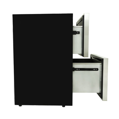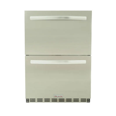 The Blaze 5.1 Outdoor Rated Double Drawer Refrigerator is the ideal space saving solution for outdoor kitchens built into your island. With 5.1 cubic feet of space, this refrigerator has ample room and can hold up to 154 cans! The double drawers include adjustable and removable drawer dividers, letting you customize the interior. This refrigerator also includes high-quality soft-close drawers! The 304 Stainless Steel design pairs well with all of your other outdoor kitchen products, and includes a digital thermostat and temperature display. The Blaze Double Drawer Refrigerator also includes interior LED lighting for entertaining at night. The refrigerator, including the compressor, is warranted for 1 year to the original owner against defects in manufacturing and workmanship. This warranty extends to the original purchaser against manufacturer defects for products purchased for ordinary single-family home use.