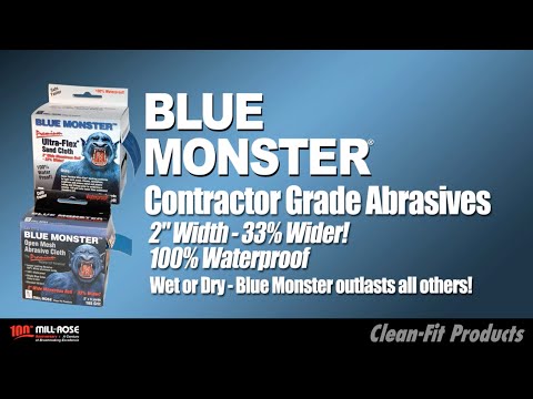 From the recognized leader in abrasives, Mill-Rose brings you Blue Monster premium open mesh abrasive cloth. These revolutionary, high-performance abrasives are tough! Blue Monster outlasts all others in the most demanding conditions, wet or dry. Ideal for deburring and cleaning tubing, fittings and parts, Blue Monster works on copper, brass and other metals, as well as all types of plastic. Blue Monster's exclusive extra width (33 1/3 percent more material) provides more cleaning surface for large diameter tube and fittings. Blue Monster Abrasive Cloths provides contractors with more "surface-to-surface" coverage.